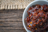 Daging Berlado / berlada lub wołowiny smażone z chili słynnej kuchni w Azji kraju, zwłaszcza Indonezji, Malezji i Tajlandii. Sukulentne mięso z pikantnym i aromatycznym sosem balado.