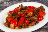 Daging Berlado / berlada lub wołowiny smażone z chili słynnej kuchni w Azji kraju, zwłaszcza Indonezji, Malezji i Tajlandii. Sukulentne mięso z pikantnym i aromatycznym sosem balado.
