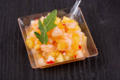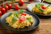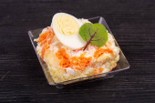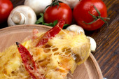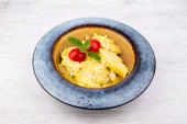 kotlety szczupak z bekonem, podawane z ozdobą ryżu