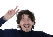 Zdjęcie "młody człowiek z dwoma palcami na białym tle" może być wykorzystywane do celów osobistych i komercyjnych zgodnie z warunkami zakupionej licencji Royalty-free. Obraz jest dostępny do pobrania w jakości wysokiej rozdzielczości do 5760x3840.