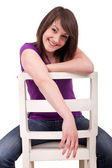 Zdjęcie "portret młodej kobiety, siedząc na krześle na białym tle" może być wykorzystywane do celów osobistych i komercyjnych zgodnie z warunkami zakupionej licencji Royalty-free. Obraz jest dostępny do pobrania w jakości wysokiej rozdzielczości do 5760x3840.