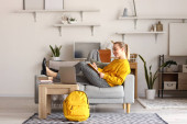 Zdjęcie "Kobieta uczeń przygotowuje się do egzaminu w domu" może być wykorzystywane do celów osobistych i komercyjnych zgodnie z warunkami zakupionej licencji Royalty-free. Obraz jest dostępny do pobrania w jakości wysokiej rozdzielczości do 5760x3840.