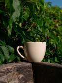 Zdjęcie "Biała porcelana herbata filiżanka makieta na drewnianym balkonie z zielonymi dzikimi winogron kraju stylu. Szablon kubek ciepły zdrowy napój. Gorący, warzony naturalny napój. Przytulny słodki dom weekend rano śniadanie domek" może być wykorzystywane do celów osobistych i komercyjnych zgodnie z warunkami zakupionej licencji Royalty-free. Obraz jest dostępny do pobrania w jakości wysokiej rozdzielczości do 5760x3840.