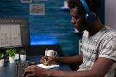 Zdjęcie "Afrykański Amerykanin sprawdzający krypto giełdy walut" może być wykorzystywane do celów osobistych i komercyjnych zgodnie z warunkami zakupionej licencji Royalty-free. Obraz jest dostępny do pobrania w jakości wysokiej rozdzielczości do 5760x3840.