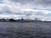 Fregata "Admirał Floty Kasatonow" i Corvette "Stoyky" w rejonie wodnym Nevy na Dzień Marynarki Wojennej w Sankt Petersburgu.