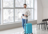 Zdjęcie "Uśmiechnięty biznesmen z walizką stojący obok budynku " może być wykorzystywane do celów osobistych i komercyjnych zgodnie z warunkami zakupionej licencji Royalty-free. Obraz jest dostępny do pobrania w jakości wysokiej rozdzielczości do 5760x3840.