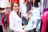 młoda dziewczyna w sklepie kupując ubrania