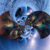 Planetarium. Planety w niebieskiej przestrzeni. Fraktal geometryczny. Renderowanie 3D