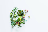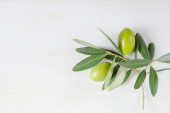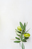 Dojrzałe zielone oliwki na gałęzi. Przestrzeń kopiowania.