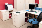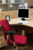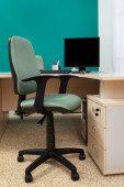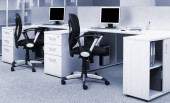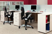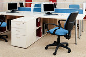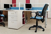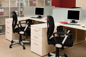 Komputery za szybą w nowoczesnym biurze