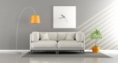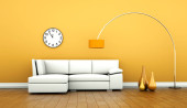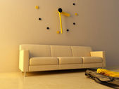cztery nowoczesne zegar i aksamitnej kanapie - cyfrowych dzieł sztuki