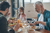 Zdjęcie "Widok rodziny wielopokoleniowej komunikującej się podczas wspólnej kolacji" może być wykorzystywane do celów osobistych i komercyjnych zgodnie z warunkami zakupionej licencji Royalty-free. Obraz jest dostępny do pobrania w jakości wysokiej rozdzielczości do 5760x3840.