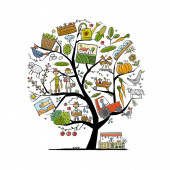 Światowy Dzień Turystyki. Koncepcja turystyki leśnej i górskiej. Camping Art drzewo dla Twojego projektu.