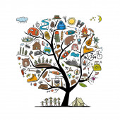 Zdjęcie "Światowy Dzień Turystyki. Koncepcja turystyki leśnej i górskiej. Camping Art drzewo dla Twojego projektu." może być wykorzystywane do celów osobistych i komercyjnych zgodnie z warunkami zakupionej licencji Royalty-free. Obraz jest dostępny do pobrania w jakości wysokiej rozdzielczości do 5760x3840.