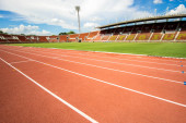 czerwony tor biegowy punkt startowy na stadionie lekkoatletycznym z Bangkok Tajlandia w dniu 2017