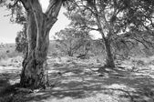 Szczegóły obrazu Standley Chasm w MacDonnell Ranges w pobliżu Alice Springs, Terytorium Północne, Australia featuring pomarańczowe twarze skalne i piękne drzewa dziąseł ducha