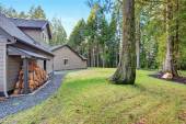 na zewnątrz domu. widok z trzech garaż z podjazdu i sprężyn