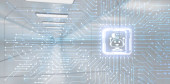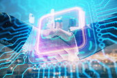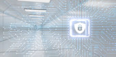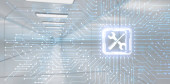 Koncepcja technologii innowacji biznesowych. Wirtualny przycisk na ekranie