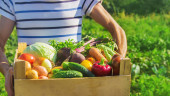 Zdjęcie "Warzywa w rêkach dziecka i ojca rolnika w ogrodzie. Wybiórcze skupienie. Przyroda." może być wykorzystywane do celów osobistych i komercyjnych zgodnie z warunkami zakupionej licencji Royalty-free. Obraz jest dostępny do pobrania w jakości wysokiej rozdzielczości do 5760x3840.