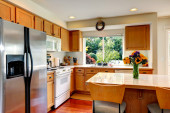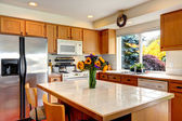 Zdjęcie "Przytulna kuchnia wnętrz z wyspy i okna" może być wykorzystywane do celów osobistych i komercyjnych zgodnie z warunkami zakupionej licencji Royalty-free. Obraz jest dostępny do pobrania w jakości wysokiej rozdzielczości do 5760x3840.
