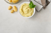 Skład ze smacznymi tłuczonymi ziemniakami na jasnym tle