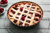Zdjęcie "Siatka ze smacznym plackiem wiśniowym na jasnym tle" może być wykorzystywane do celów osobistych i komercyjnych zgodnie z warunkami zakupionej licencji Royalty-free. Obraz jest dostępny do pobrania w jakości wysokiej rozdzielczości do 5760x3840.