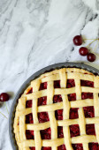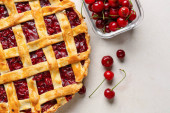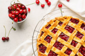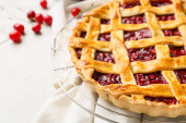 Siatka ze smacznym plackiem wiśniowym na jasnym tle