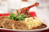 pieczona kaczka z kapusty i chleb klucha