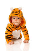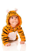 sześć miesięcy dziecko Tygrys sobie garnitur siedzący na białym tle