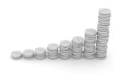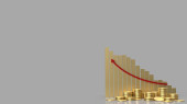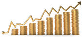 Postępu lub sukces: złote monety stosy na szarym tle