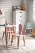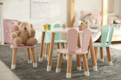 Okrągły różowy dywan na podłodze w pokoju dziecięcym