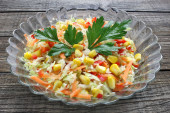 kapusta pekińska z kukurydza, marchew i jabłka, pyszne sałatki