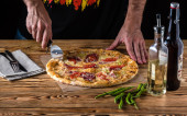 Zdjęcie "Ręka kobiety trzyma drewnianą tacę z pinsa hummus i szkliwione bakłażany" może być wykorzystywane do celów osobistych i komercyjnych zgodnie z warunkami zakupionej licencji Royalty-free. Obraz jest dostępny do pobrania w jakości wysokiej rozdzielczości do 5760x3840.