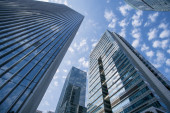 Zdjęcie "Wysokie budynki w dzielnicy finansowej w letni dzień." może być wykorzystywane do celów osobistych i komercyjnych zgodnie z warunkami zakupionej licencji Royalty-free. Obraz jest dostępny do pobrania w jakości wysokiej rozdzielczości do 5760x3840.