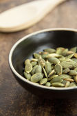 Zdjęcie "Suche nasiona dyni w misce na drewnianym stole." może być wykorzystywane do celów osobistych i komercyjnych zgodnie z warunkami zakupionej licencji Royalty-free. Obraz jest dostępny do pobrania w jakości wysokiej rozdzielczości do 5760x3840.