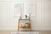 Zdjęcie "Stylowe wnętrze pokoju z puf, fotel i elementy dekoracyjne. Miejsce na tekst" może być wykorzystywane do celów osobistych i komercyjnych zgodnie z warunkami zakupionej licencji Royalty-free. Obraz jest dostępny do pobrania w jakości wysokiej rozdzielczości do 5760x3840.