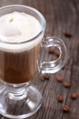 kubek gorącej czekolady lub kakao z pianki na drewniane tła