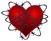 kształt serca, owinięte drutem kolczastym złoty na czarnym tle