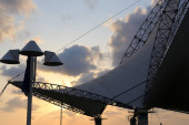 Nowoczesnej struktury nad brzegiem oceanu w publicznym parku, w pobliżu portu w Kaohsiung na Tajwanie