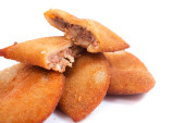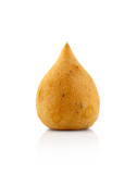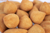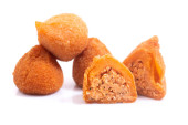 Typowy smażony kurczak przystawka z Brazylii o nazwie Coxinha de Frango odizolowany na białym tle.