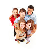 portret kobiet i mężczyzn stojących razem na białym tle