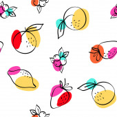 Zdjęcie "Pink and Yellow Orange and Berry Vector White Seamless Pattern. Sketch Lemon and Strawberry Texture. Blue and Red Apple and Peach Drawing Wallpaper." może być wykorzystywane do celów osobistych i komercyjnych zgodnie z warunkami zakupionej licencji Royalty-free. Obraz jest dostępny do pobrania w jakości wysokiej rozdzielczości do 5760x3840.