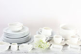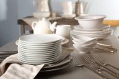 różne naczynia na półce