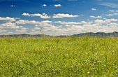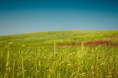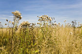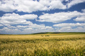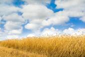 haybale, który znajduje się na wzgórza, w polu jest pełny żółty trawy.