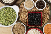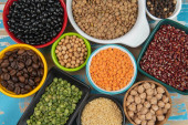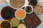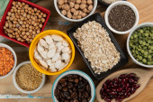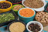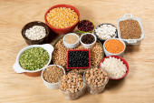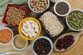 Zbieranie różnych odmian zbóż i suchych nasion jadalnych. Przykłady źródeł włókien