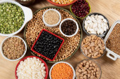 Zdjęcie "Zbieranie różnych odmian zbóż i suchych nasion jadalnych. Przykłady źródeł włókien" może być wykorzystywane do celów osobistych i komercyjnych zgodnie z warunkami zakupionej licencji Royalty-free. Obraz jest dostępny do pobrania w jakości wysokiej rozdzielczości do 5760x3840.