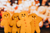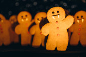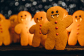Przerażające ciasteczka halloween, selektywna dekoracja ostrości na czarnym tle. Styl Halloween