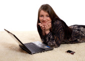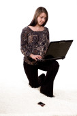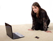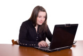 dziewczyna w urzędzie pracy na komputerze. na białym tle.