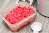 Zdjęcie "domowe lody wiśniowe w plastikowym pojemniku na stole obok łyżki do lodów i maszyny do lodów" może być wykorzystywane do celów osobistych i komercyjnych zgodnie z warunkami zakupionej licencji Royalty-free. Obraz jest dostępny do pobrania w jakości wysokiej rozdzielczości do 5760x3840.