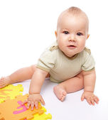 mały chłopiec z budynek cegieł